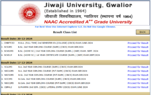Jiwaji University Result 2025 jiwaji.edu BSc BA BCom MA MSC MCOM Results 2025 {जीवाजी यूनिवर्सिटी रिजल्ट}